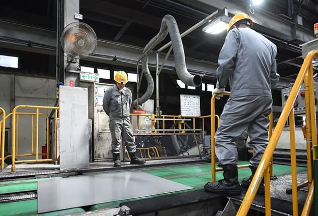 表裏面検査のスペースを確保。入り側及び出側での検査を実施。